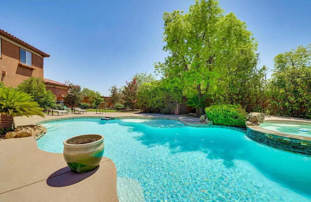 Situata a 4 km da X Spot, la villa Las Vegas Escape With Private Outdoor Paradise comprende una piscina, nonché una vasca idromassaggio per rilassarsi. Dotata di un patio, la casa vacanze si trova a 10 minuti in auto dal Nathaniel Jones Park.